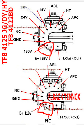 Cara ganti fyback tv tennox menggunakan flyback tv toshiba tfb4125hy/dy/jg